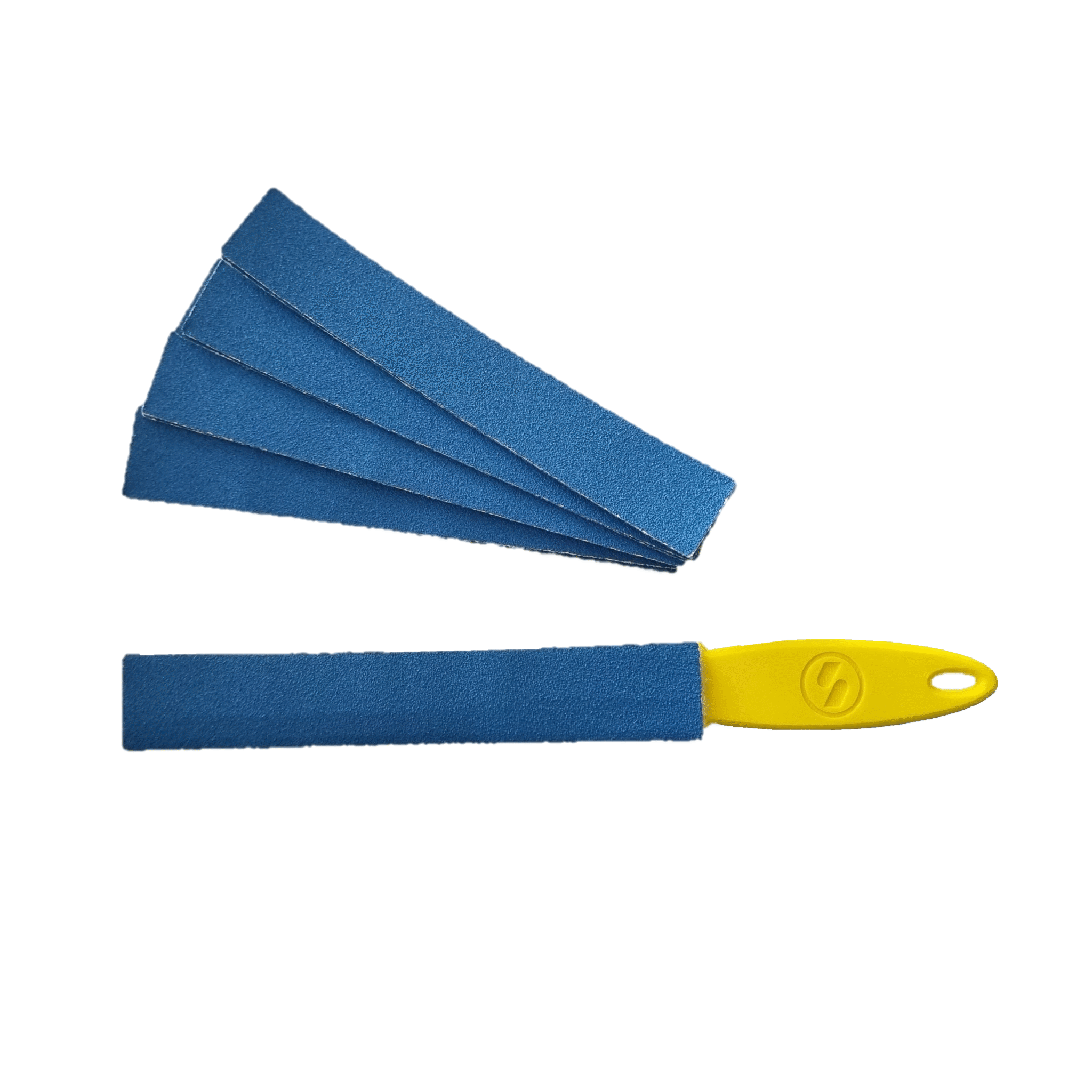 The Fast File is a unique way to quickly sand in tight areas, with velcro both sides you can have two grits on the one file.